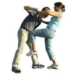 "Hörde du att hon har svart bälte i karate?" viskade jag. "Hon har varit polismästare i hela Skandinavien två år i rad."