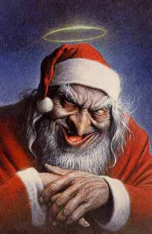 Hennes kala huvud glimmade ondskefullt i ljusen från julgranen.