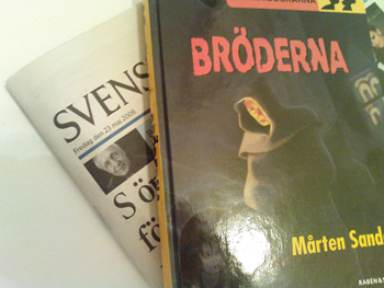 Första förhandsexemplaret av Bröderna kom med posten idag! (kolla datumet på dagstidningen, så ser ni att det inte är bluff ...) Nu kan man alltså vinna den i maj-tävlingen, så snabba er att filma!